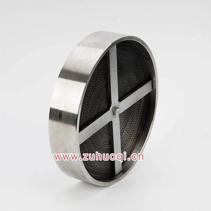 傳熱作用:大多數(shù)阻火器是由能夠通過氣體的許多細(xì)小、均勻或不均勻的通道或孔隙的固體材質(zhì)所組成,對這些通道或孔隙要求盡量的小,小到只要能夠通過火焰就可以。這樣,火焰進(jìn)入阻火器后就分成許多細(xì)小的火焰流被熄滅。火焰能夠被熄滅的機(jī)理是傳熱作用和器壁效應(yīng)。傳熱作用:燃燒所需要的必要條件之一就是要達(dá)到一定的溫度 ,即著火點(diǎn)。低于著火點(diǎn) ,燃燒就會停止。依照這一原理,只要將燃燒物質(zhì)的溫度降到其著火點(diǎn)以下,就可以阻止火焰的蔓延。當(dāng)火焰通過阻火元件的許多細(xì)小通道之后將變成若干細(xì)小的火焰。設(shè)計阻火器內(nèi)部的阻火元件時,則盡可能擴(kuò)大細(xì)小火焰和通道壁的接觸面積,強(qiáng)化傳熱 ,使火焰溫度降到著火點(diǎn)以下,從而阻止火焰蔓延。
