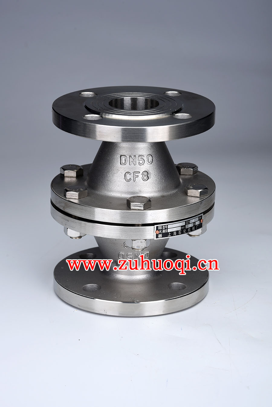 阻火器是用來阻止易燃?xì)怏w和易燃液體蒸汽的火焰蔓延的安全裝置。一般安裝在輸送可燃?xì)怏w的管道中,或者通風(fēng)的槽罐上,阻止傳播火焰(爆燃或爆轟)通過的裝置,由阻火芯、阻火器外殼及附件構(gòu)成。阻火器也常用在輸送易燃?xì)怏w的管道上。假若易燃?xì)怏w被引燃,氣體火焰就會傳播到整個管網(wǎng),為了防止這種危險的發(fā)生,也要采用阻火器。