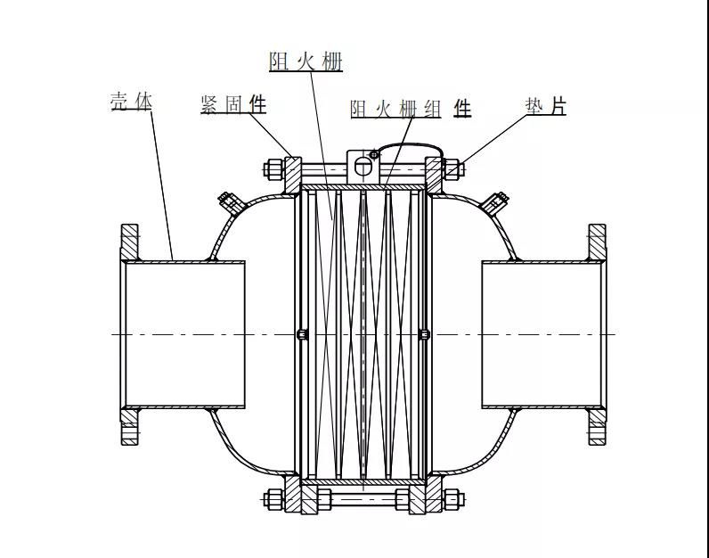 完整的雙向阻火器是由兩個金屬殼體,用緊固件夾緊阻火柵組件而組成的。
